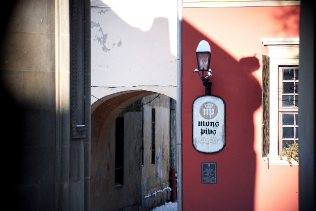 Pierwszy tego typu bank powstał w 1584 r. w Krakowie, z inicjatywy Piotra Skargi, kolejne m. in. w Zamościu (1601). We Lwowie już od połowy XVI w. istniała kasa pożyczkowa przy bractwie prawosławnym cerkwi uspienskiej działająca na podobnych zasadach (udzielała bezprocentowych kredytów). Katolicy o podobnej kasie zaczęli myśleć w 1599 r., kiedy Paweł Kampian zapisał w testamencie kwotę 1000 zł na bezprocentowe (do roku czasu) pożyczki dla mieszczan. Pieniądze miały być przechowywane w kaplicy grobowej Kampianów. Mimo, iż kwota ta była sukcesywnie pomnażana, wskutek różnych niepomyślnych wydarzeń bank powstał dopiero w 1665 r., z kapitałem początkowym 7000 zł.